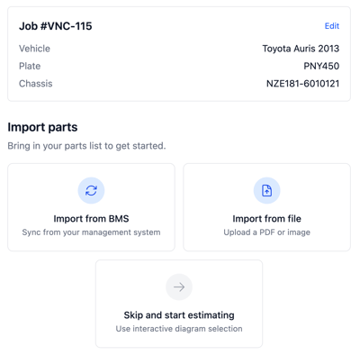 - Start your job as you normally would. Either from your BMS or manually within Partly. When you create this new job, you'll have a few ways to get your parts list into Partly.