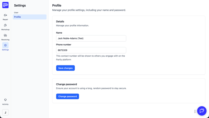 Phone Numbers and Password Changing in Partly: